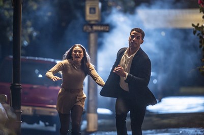 Carrying us through various locales, this impetus is sustained through fluid pacing — reinforcing the threat as a constant pursuit of our would-be couple without fault. Holt and Gooding match convincingly, serving the feature’s direct purpose and resonance, which provides a coherent mishmash of romance and horror—a fine alternative to the typical romantic comedy. An expansive pre-finale, complete with a smooth director cameo, crowns the film’s positively ludicrous screenplay with what feels like a fitting endpoint — one it unfortunately continues beyond.